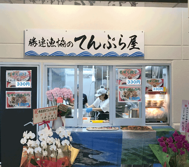うるま市の新名所「うるマルシェ」に出店中!アツアツ揚げたてのもずく天ぷらはお昼には行列ができるほど大人気♪